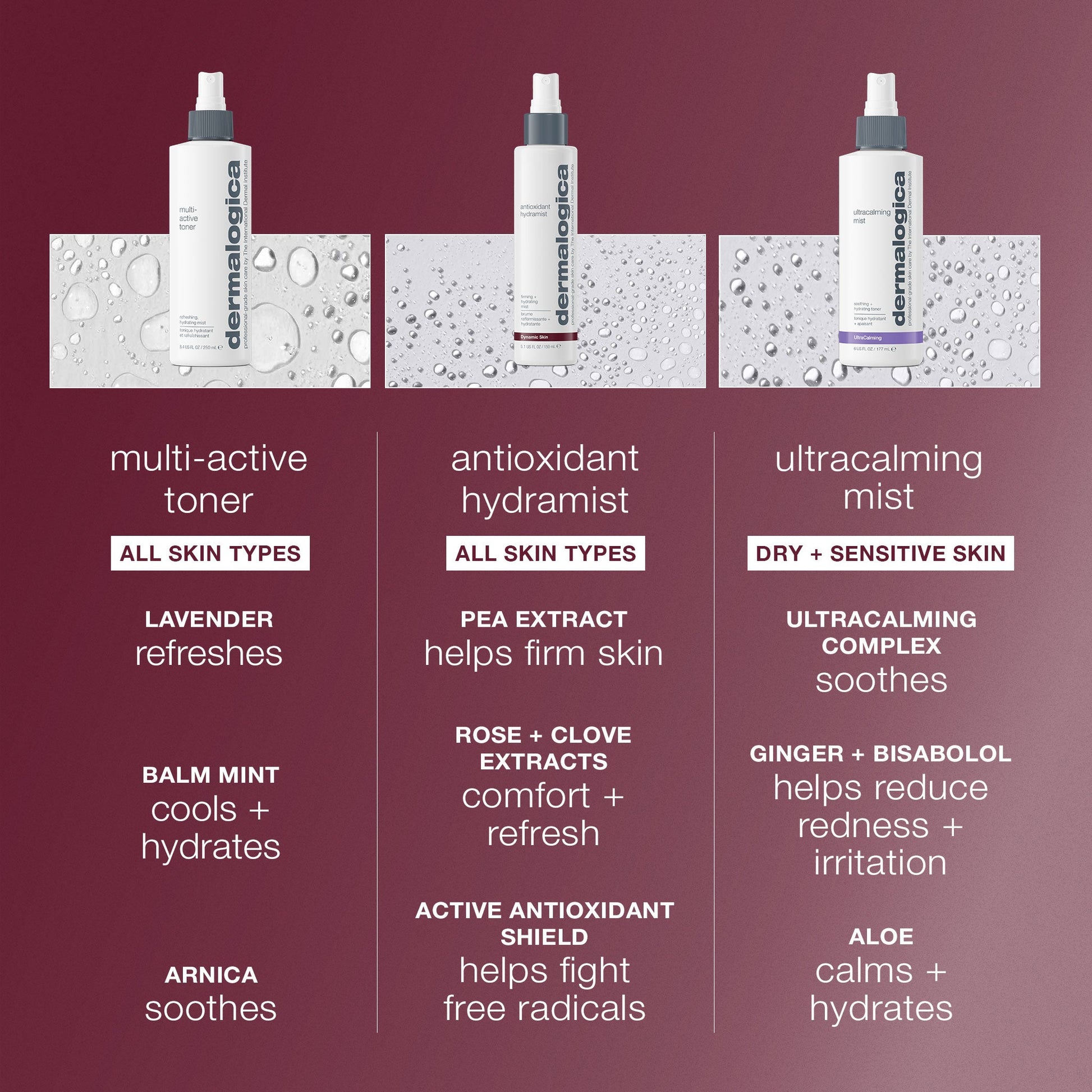 Lightweight and refreshing - a fine mist that hydrates without feeling heavy or greasy.